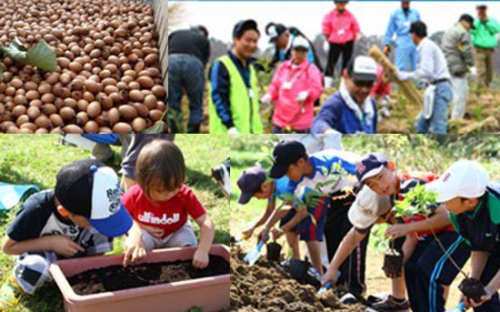 「海を守る植樹教育事業」は、平成24年度からスタートした事業です。本事業は、どんぐりから苗を育て、植樹を行う「体験型の環境教育」を特徴としており、事業を通じて自然の役割を学び、環境保全の意識を高めることを目指しています。 |